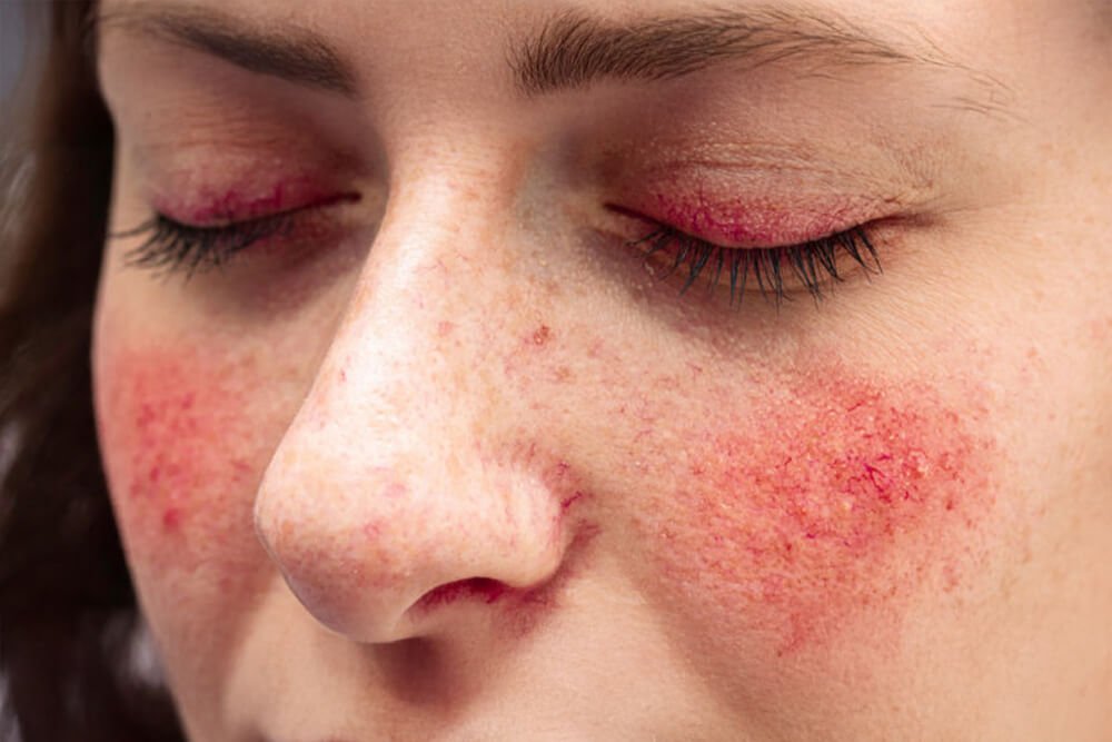 A rosácea é uma doença crônica que causa vermelhidão, vasos dilatados e sensibilidade no rosto, podendo formar pústulas. Tem gatilhos como calor e estresse. Precisa de cuidados diários, produtos adequados e, quando necessário, tratamentos com laser ou medicações.